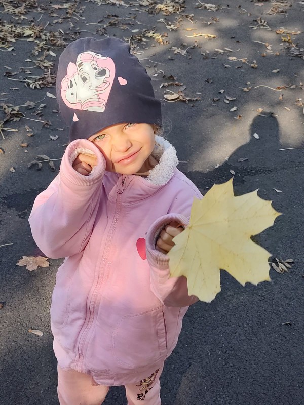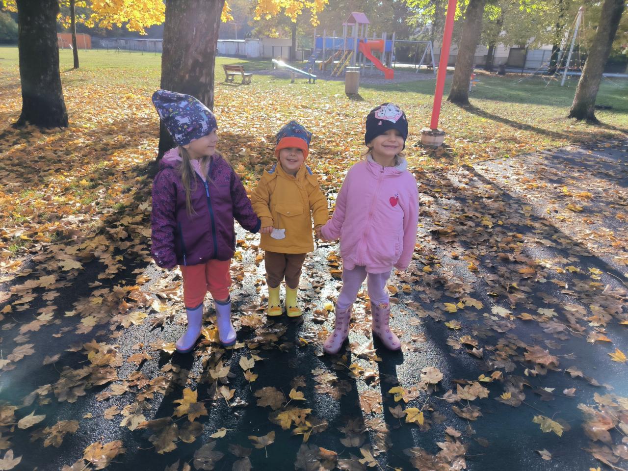 Děti si užily krásný podzimní den venku. Děti si hrály s přírodninami a běhaly v listí.